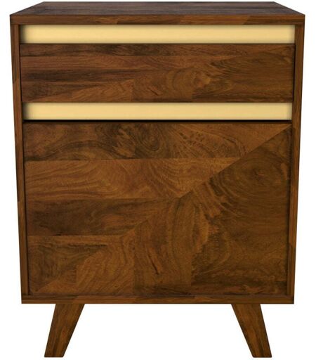 Rendez-vous Déco - Table de chevet en bois détails dorés, 1 tiroir et 1 porte - tripoli