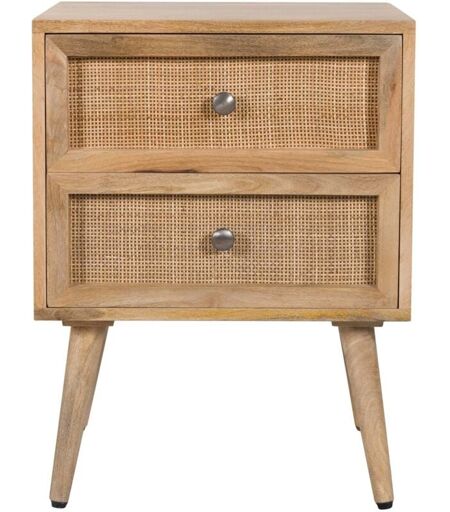 Rendez-vous Déco - Table de chevet 2 tiroirs en cannage et bois de manguier - cody