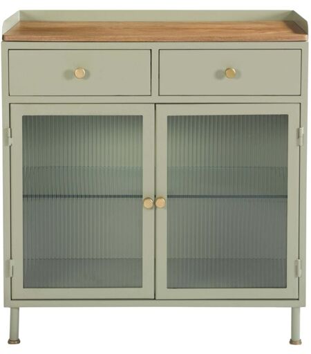 RENDEZ-VOUS DÉCO Buffet 2 portes 2 tiroirs en métal vert, manguier et verre - MARNIE