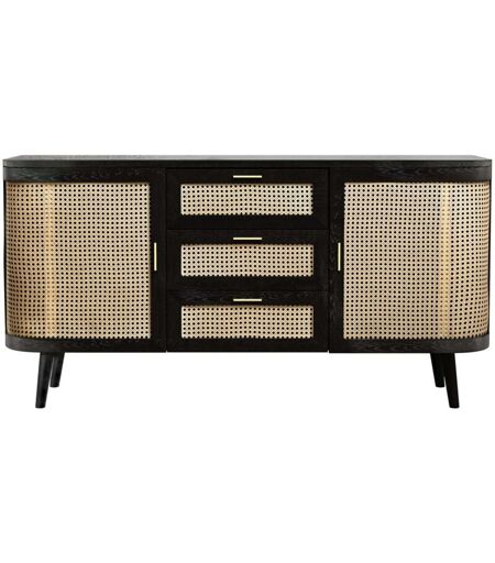 Rendez-vous Déco - Buffet noir 2 portes 3 tiroirs en bois de manguier et cannage - wendy