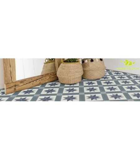 · Tapis décoratif, très facile d’entretien, motif moderne et actuel · Tapis motif carreaux ciment, tapis géométrique. Les tapis en carreaux ciment que nous proposons sont en aspect vieilli comme vous pouvez le voir sur les photos (les légères rayures sont volontaires) · Epaisseur 3mm / Composition : Dessus PVC (véritable vinyle) et Envers Polypropylène · Tapis de sol fabriqué pour MadeInNature · Entretient Facile (aspirateur, serpillère ...) · Envers textile fibres recyclées, permet au tapis de ne pas glisser et procure un meilleur confort, ainsi qu’une isolation acoustique (21Db) et une bonne résistance aux taches et aux rayures. · Pose verticale possible : Peut être utilisé en crédence, faïence, en dessous de table, ou en contre marche ...