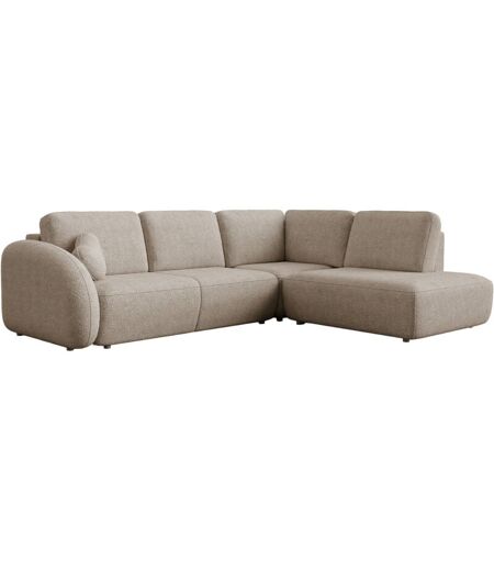 Mobilier Deco - djena - Canapé d'angle convertible avec coffre en tissu bouclette taupe - Angle droit