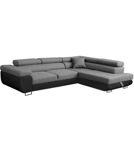 Mobilier Deco - aubin - Canapé d'angle convertible gris et noir coffre de rangement - Angle Droit