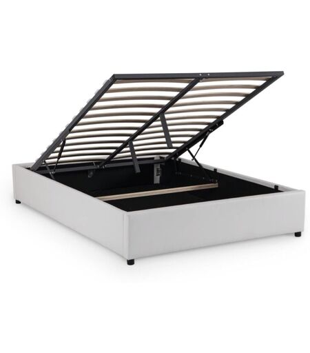 Mobilier Deco - bazil - Lit sommier relevable avec coffre en simili cuir blanc 180x200