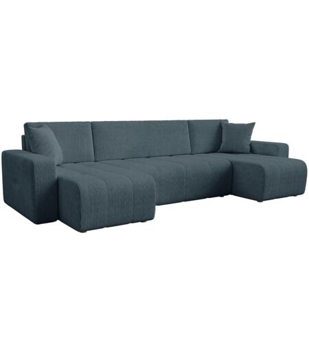 Mobilier Deco - alicia - Canapé panoramique convertible avec coffre en velours côtelé bleu