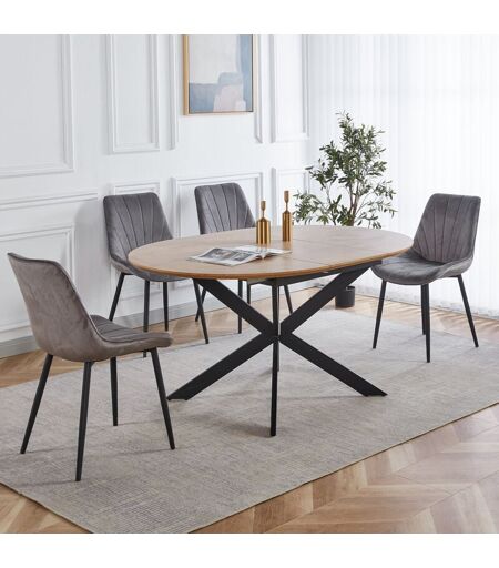 Sublimez votre intérieur avec notre table à manger ovale extensible couleur chêne foncé SANTOS. ...