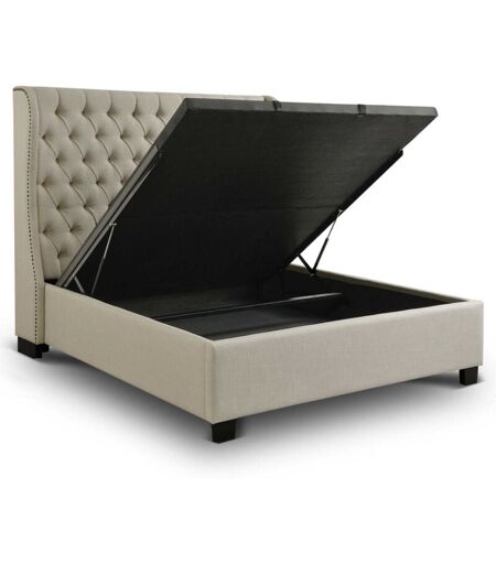 Mobilier Deco - fleura - Lit capitonné avec coffre de rangement en tissu lin beige 160x200 cm