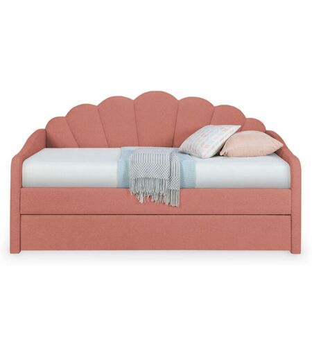 Mobilier Deco - queen - Lit gigogne en tissu bouclette rose 90x190 cm