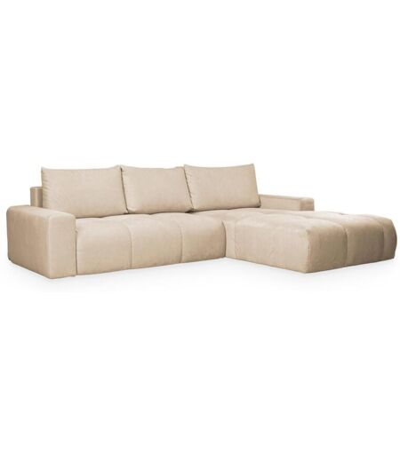 Mobilier Deco - lygie - Canapé d'angle convertible avec coffre en velours beige - Angle droit