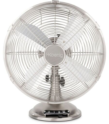 Design métalDiamètre : 30 cmSilencieux3 vitesses de ventilation4 pâles en métalPosition fixe ou oscillation à 90 °CPieds antidérapantsPuissance : 35 W ...