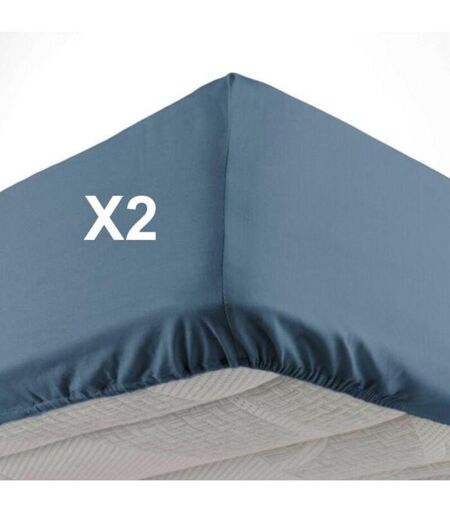 Cdaffaires - Lot de 2 Draps housse bonnet 30 cm 2 personnes 140 x 190 cm microfibre Oscar Bleu