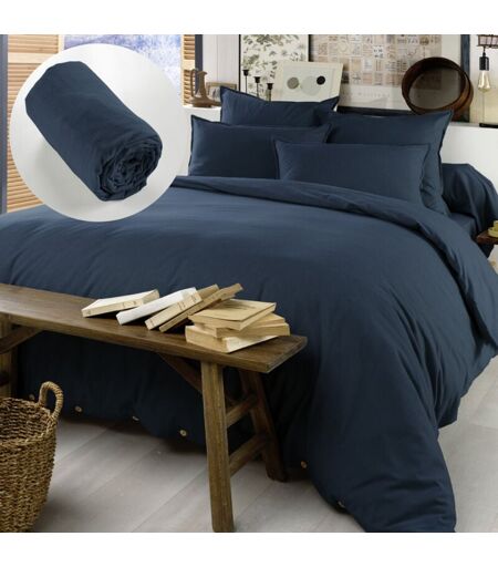 DOUCEUR D'INTÉRIEUR Pack Housse de couette chaude en flanelle 240 x 220 cm + drap housse 140x190 Candice Bleu