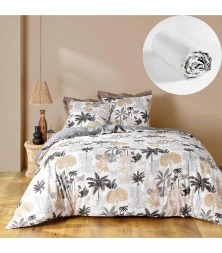 Douceur D'intérieur - Parure de Lit Scarlett Gris 240 x 220 cm + Drap-Housse 140x190 cm Blanc