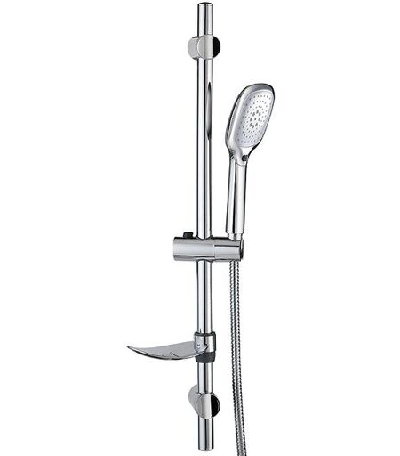 Combiné barre de douche et douchette 2 jets finition chromée. Cet ensemble complet, équipé d'un porte savon, est idéal pour le remplacement de votre colonne de douche. Son entraxe de fixation réglable de 70 cm vous permet de positionner votre barre de douche au même endroit sans devoir percer de nouveaux trous. Caractéristiques de la colonne de douche : - Matière et finition inox chromé - Patères de fixations murales réglables (hauteur : 70 cm) - Diamètre de la barre : 25 mm - 1 Douchette 5 jets (pluie fine, massage) - Choix des jets sur manche douchette - Flexible inox chromé 1m50 - 1 porte savon orientable Ce que nous aimons Cette barre de douche équipée de sa douchette est doté d'un design intemporel et qui s'adaptera à toutes les salle de bains. La fixation réglable de la barre de douche vous permet de remplacer votre ancien équipement sans réaliser de nouveaux trous de fixations. La douchette 2 jets vous procurera différentes sensations selon le type de jets choisis. Equipé d'un ...