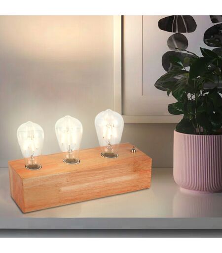SAMPA Lampe de table à poser déco desgn en bois naturel 3 lumières Compatible led