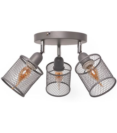 Sampa - Plafonnier lampe de plafond 3 spots orientable en métal grillagé gris E14 compatible led