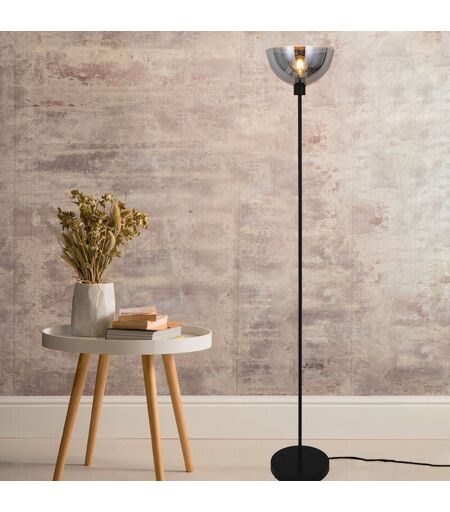 SAMPA Lampe de salon design Bolton 170cm métal et verre gris fumé compatible LED