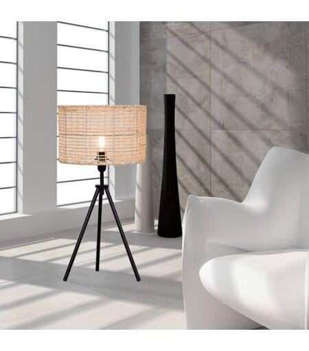 Sampa - Lampe moderne Bora métal noir et rotin naturel compatible led