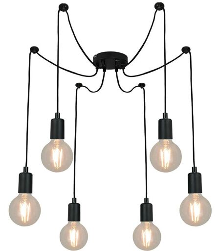 Caractéristique : - Puissance max : 60W - Culot d?ampoule : E27 - Matériaux : Métal - Couleur : Noir - Hauteur : 150cm - Largeur : 50cm Description : La suspension (ou plafonnier) Lina en métal noir a une puissance maximale de 60W et elle est compatible avec les ampoules E27 (ampoule non fournie). La suspension fait 150cm de hauteur maximale (réglable) et 50cm de large. Il peut avoir jusqu?à 6 ampoules afin d?éclairer au mieux votre intérieur. La suspension Lina 553093 est conçue pour apporter une touche de modernité et de sophistication à votre espace, tout en offrant un éclairage fonctionnel et adapté à vos besoins. ...