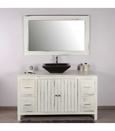 Saniteck - Ensemble meuble vasque et miroir salle de bain en bois teck blanc naturel 140 cm Taille - Meuble+miroir- sans vasque