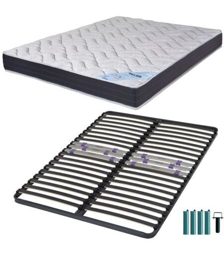 Ebac Matelas Mousse + Sommier Métal C223 140x190 Melior - Hauteur 20 Cm - Soutien Ferme