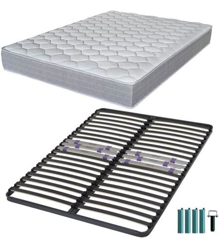 Ebac Matelas Mousse + Sommier Métal C223 140x190 Madere - Hauteur 24 Cm - Soutien Ferme