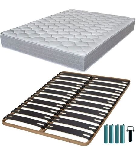 Ebac Matelas Mousse + Sommier Métal C310 140x190 Madere - Hauteur 24 Cm - Soutien Ferme
