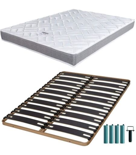 Ebac Matelas Mousse + Sommier Métal C310 160x200 Morgan - Hauteur 17 Cm - Soutien Ferme