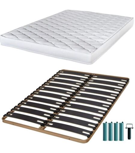 Ebac Matelas Mousse + Sommier Métal C310 140x190 Marly - Hauteur 15 Cm - Soutien Ferme