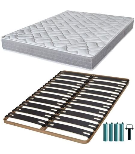 Ebac Matelas Mousse + Sommier Métal C310 140x190 Maryland - Hauteur 20 Cm - Soutien Ferme