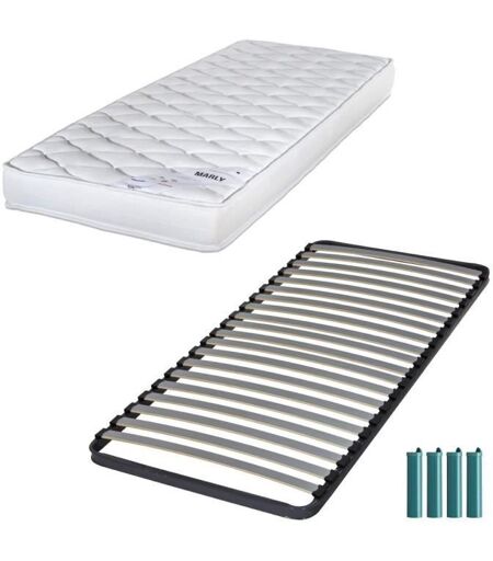Ebac Matelas Mousse + Sommier Métal C220 90x190 Marly - Hauteur 15 Cm - Soutien Ferme