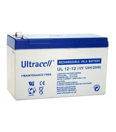 Batterie plomb - Ultracell UL 12-12 Batterie Plomb/Gel 12 V 12 Ah. Les batteries au plomb sont recyclables à plus de 90% . Dans un soucis de limiter l'empreinte carbone due au transport couteux de produits lourds, Ohm-Easy a fait le choix de produits fabriqués dans l'Union Européenne. Ultracell se sont engagés à réduire l'impact de leur activité sur l'environnement et tentent continuellement d'améliorer leurs performances environnementales. Caractéristiques : - Tension nominale : 12V ; - Capacité : 12 Ah (20 heures, 1.80V/cell, 25°C) ; - Courant de décharge maximum : 180A (5 secondes) ; - Résistance : environ 14 m ; - Température de fonctionnement : -- Décharge : + 15°C à 50°C ; -- En charge : 0°C à + 40°C ; -- Stockage : - 15°C à + 40°C ; - Capacité en fonction de la température : 103% à + 40°C; 100% à + 25°C; 86% à 0°C ; - Durée de vie (20°C) : 5 ans ; - Auto-décharge : les batteries Ultracell peuvent être stockées 6 mois à 25°C avant d'être rechargée. Le temps diminue au fur et à ...