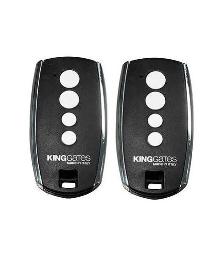 Lot de 2 télécommandes KING GATES Stylo 4K noire touches blanches, 4 boutons, de fréquence 433,92 Mh Stylo 4K est un émetteur radio rolling code 433.92 MHz à quatre canaux au design recherché. La version 4K à quatre canaux a une coque en métal chromé particulièrement résistante. ATTENTION : Vérifiez que cette télécommande est compatible avec votre système. Assurez-vous que celui-ci est de la même fréquence ! Si vous habitez en copropriété, vous ne pourrez pas programmer la télécommande sans votre syndic. Caractéristiques : - Fréquence : 433,92 MHz ; - Portée : 100 m ; - Codification : Rolling code ; - Alimentation : 3 Vcc ; - Courant absorbé : 10 mA ; - Dimensions : 70x38x10 mm. ...