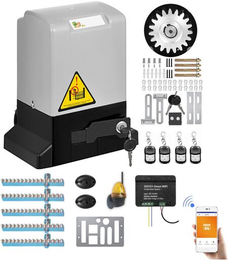 M-E Motorisation Portail Coulissant Ouvre-Porte + 4 Télécommandes + 5 crémaillères + Feu a led + Récepteur wifi intelligent - 600 kg 12 m Maxi par
