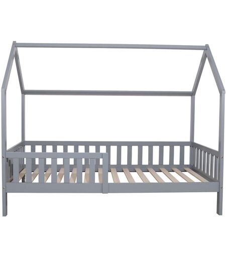 BENEFFITO Oneiroi - Lit Maison Enfant avec Tête de Lit et Contour en Bois - Protection antichute - Bois de Pin Gris - Lit 90x190CM