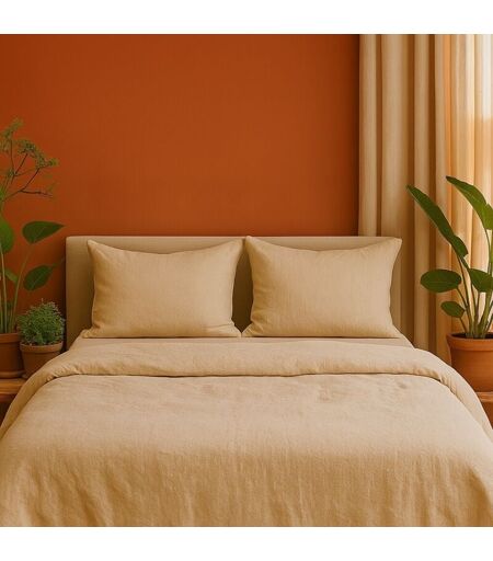 Promo Linge - Parure de Lit en Gaze de Coton 240 x 220 cm - Sable