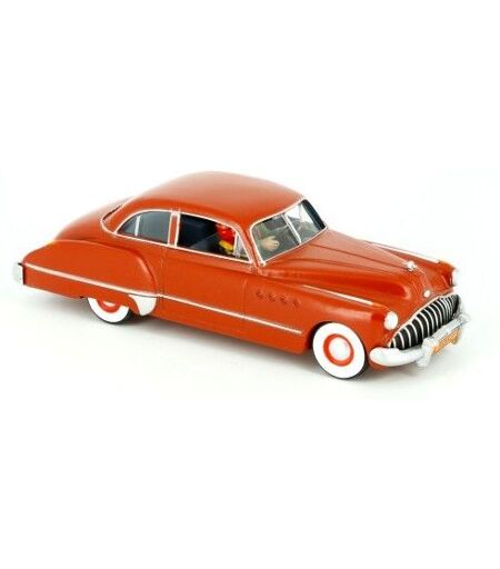 A tombeau ouvert Traqué par Tintin au c¿ur même de son palais de Wadesdah, le professeur Smith réussit néanmoins à prendre la fuite avec Abdallah, le fils de l?émir Ben kalish Ezab qu?il détient en otage. Il est au volant d?une superbe américaine rouge et appuie sur le champignon en s?aventurant sur la seule piste praticable. Tintin et Haddock se lancent à ses trousses à bord de l?auto de l?émir... Pas de doute : la Buick que conduit à vive allure le professeur Smith est bien une Roadmaster 1949. A quatre-vingt-dix pour cent du moins. 54.674 ex. Echelle 1/43 ...