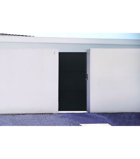 Largeur: 100cm et Hauteur 200cm Poteaux adaptés : DARIO 06H270 Matériau : Acier galvanisé Accessoires et visserie fournis Casanoov est spécialisé dans les portails et portillons en KIT, à asssembler et à poser soi-même Découvrez notre portillon en acier plein pour piéton NALI, le choix idéal pour allier robustesse et esthétisme. Conçu pour vous offrir à la fois sécurité et design, la porte piétonne NALI saura rehausser l'entrée de votre propriété tout en assurant une protection inégalée. Fabriqué à partir d'acier galvanisé de haute qualité, ce portillon offre une résistance exceptionnelle aux intempéries, à la corrosion et aux impacts, assurant une durabilité à long terme. Son design plein offre une intimité totale grâce à ses panneaux opaques, protégeant ainsi votre espace des regards indiscrets, tout en constituant une barrière contre les intrusions. Le portillon en acier NALI vous offrira une entrée fonctionnelle et pratique qui s’harmonisera parfaitement avec n’importe quel type ...