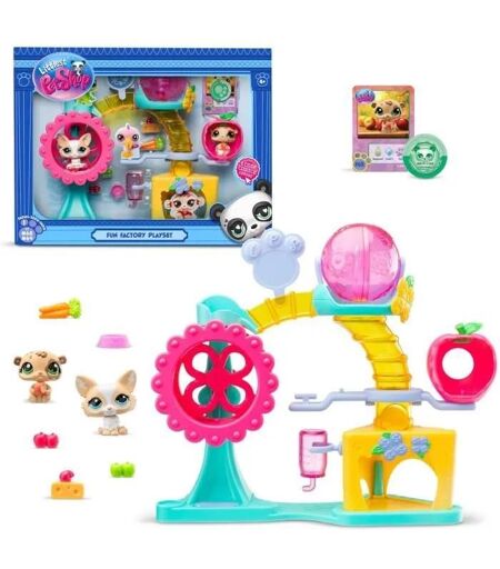 Bandai - Littlest Pet Shop - Coffret Fun Factory - Ensemble De Jeu Avec 2 Animaux, Décor Et Accessoires - Bf00519