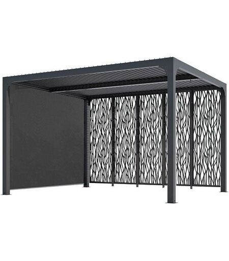 Habrita - Pergola bioclimatique Foresta PER36M30R bi alu 10,80m2 gris avec panneaux moucharabieh pour côté 3,60m et rideau manuel pour côté 3m