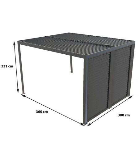 Habrita - Pergola bioclimatique Foresta PER3630V bi aluminium 10,80m2 avec ventelles latérales mobiles pour côté 3m gris anthracite