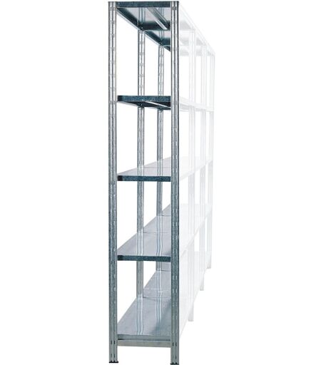 Echelle de rayonnage Galvatop à claire voie 2500x300 Perforation tous les 25 mm pour ajuster en hauteur les tablettes (montage des tablettes avec crochets) Finition galvanisée résistante à la corrosion. Charge par échelle : 4000 kg maxi Echelle livrée assemblée Pieds en plastiques fournis. Dimensions > Hauteur 2500 mm > Profondeur 300 mm ...