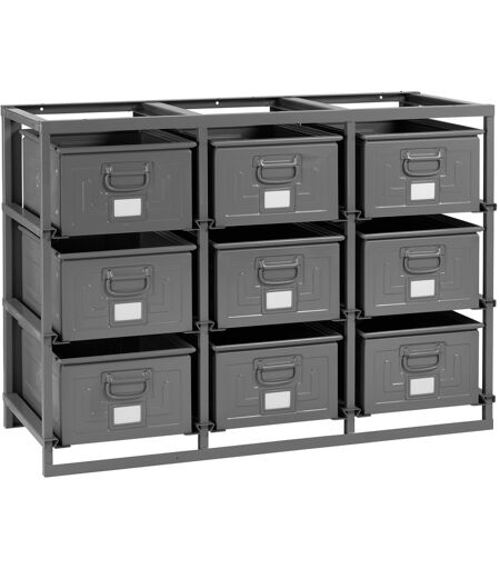 SETAM Rack de rangement 9 postes avec caisses métalliques vernies 85 litres