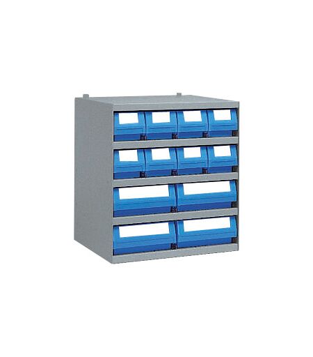 Casier de rangement Multibox avec 12 bacs tiroirs en plastique profondeur 500 mm Equipe 8 tiroirs largeur 120 mm + 4 tiroirs largeur 240 mm Structure en métal coloris gris (peinture laquée) Dimensions > Hors tout L. 500 x P.500 x H.545 mm > Poids : 20.3 kg Points Forts > Structure solide en acier > Casiers empilables ...