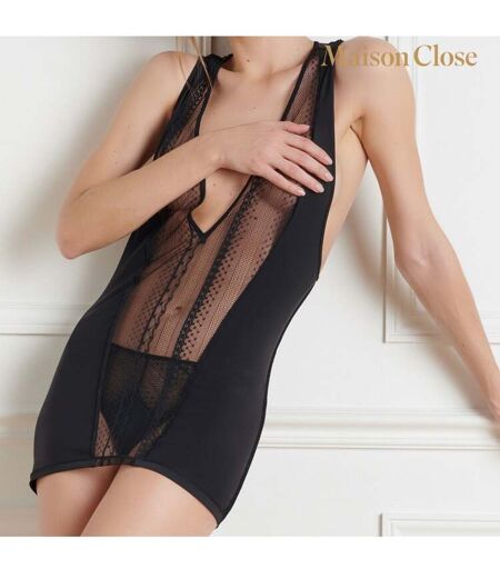 Maison Close incite au désir avec la collection fatale Sacré Cœur. Entrez en scène avec cette nouvelle collection inspirant à un spectacle passionnel avec sa trame de couleur rouge se logeant côté cœur. La dentelle se mêlera parfaitement à la fine résille ne laissant apparaître seulement l’essentiel afin d’attiser la curiosité. Contrasté à l’opacité de la microfibre, ce trio de matières noires est digne d’une grande dame ne révélant pas ses secrets… Laissez-vous charmer pour des moments intimes sous les projecteurs tamisés de l’amour. Le Débardeur Sacré Coeur Noir est une pièce de lingerie très sensuelle et unique qui mettra vos courbes en valeurs avec la coupe moulante et élastique chic et sexy. Composé en microfibre et dentelle finement travaillée, sa transparence attisera la curiosité et le désir de votre partenaire. Les seins seront habillés par la microfibre noire ultra confort en contraste avec la résille mêlée à la dentelle noire apportant une touche d'élégance à votre tenue. Le décolleté largement plongeant en V et le dos entièrement transparent en résille offre une vue imprenable sur vos atouts. Composition : Microfibre : 84% Nylon, 16% Élasthanne ; Dentelle : 82% Nylon, 18% Élasthanne ; Résille : 86% Nylon, 14% Élasthanne Tailles S, M, L, XL. ...
