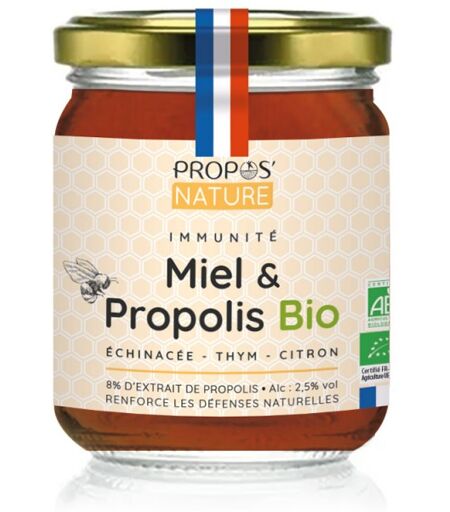 Propos Nature Mélange Immunité Miel & Propolis 8% BIO 125 g (Échinacée, huile de Thym et Citron)