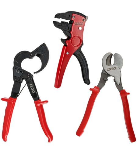 OXEO Kit électricien 3 outils - 1 pince coupe câble à cliquet - 1 pince coupante coupe câble - 1 pince à dénuder automatique