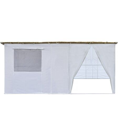 Habitat et Jardin Souccah en Kit NINA ajustable - 4 x 2 x 2.1 m - Dimensions extérieures 4 x 2 m - Tissu Oxford blanc - avec 3 tasseaux de bois Soucca de 3.2 m - de section 4 x 4 cm - 2 Rouleaux de canisse en bambou fendus - 2.1 x 2.1 m