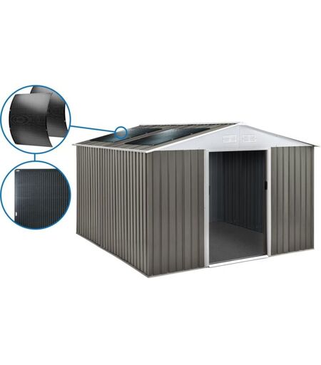 Habitat Et Jardin - Abri jardin métal 'Dallas' - 15.16m² avec panneau solaires - Taupe