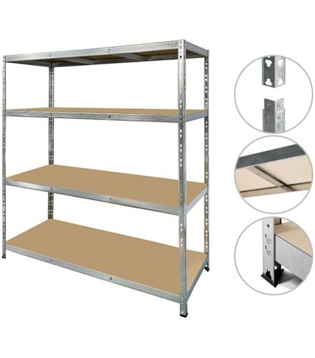 Étagère de rangement polyvalente en métal pour le stockage de charges lourdes ou volumineuses. L'étagère est facile et rapide à monter, sans vis et sans outils via un système d'accroche papillon, elle offre une grande résistance et une grande stabilité. Solide, une barre centrale de renfort se trouve sous chaque plateau et l'étagère est équipée de pieds en plastiques pour protéger le sol des rayures. Pratique, ce modèle est idéal pour ranger et organiser toutes vos pièces en plus : garage, atelier, cave, dressing... Chaque niveau supporte jusqu'à 250 kilos !! soit 1000 kilos de charge totale. Les charges indiquées s'entendent uniformément réparties. Ultra modulable, la hauteur des plateaux est ajustable et l'étagère peut se transformer en 2 étagères distinctes pour s'adapter à vos espaces. Pour une sécurité optimale, des trous sont présents sur la structure afin de pouvoir la fixer au mur si besoin. 2 sets de vis et chevilles pour fixation murale sont fournis, cependant avant ...